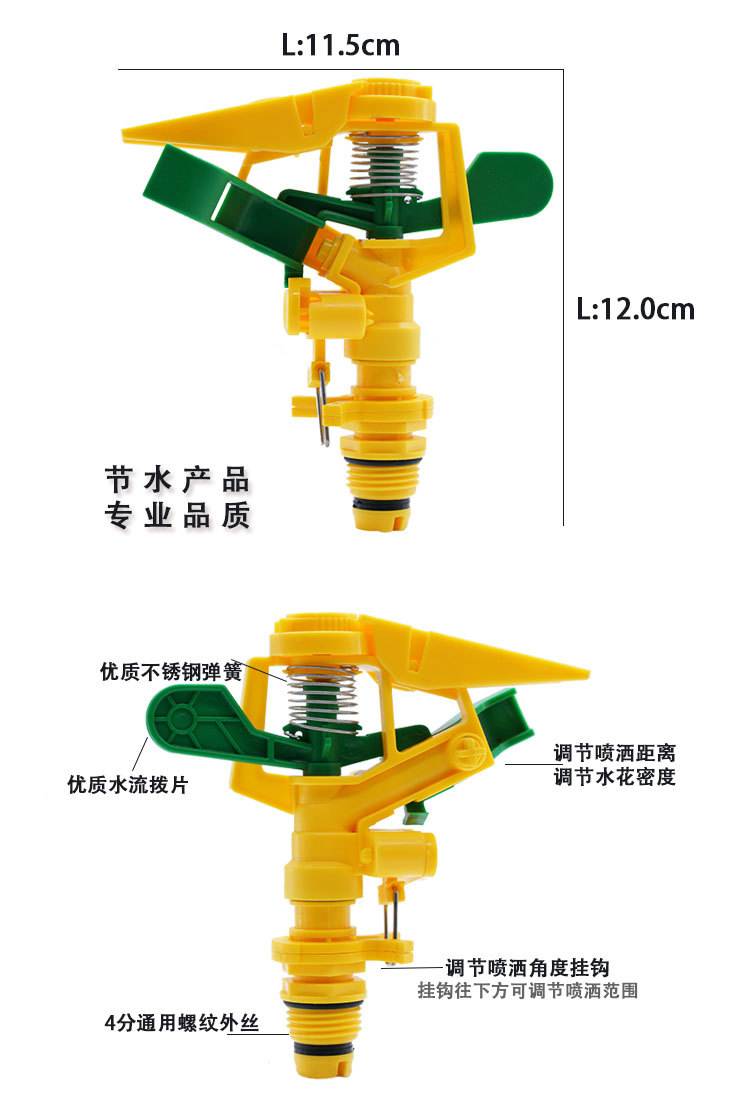 花園噴槍綠化園林農業澆水4分外絲可調360度自動旋轉塑料搖臂噴頭