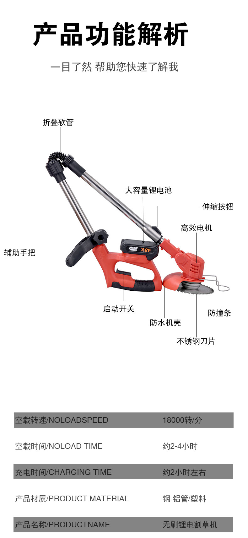 無(wú)刷大功率電動(dòng)打草機(jī)可折疊易放置割草機(jī)可調(diào)節(jié)刀頭款除草神器