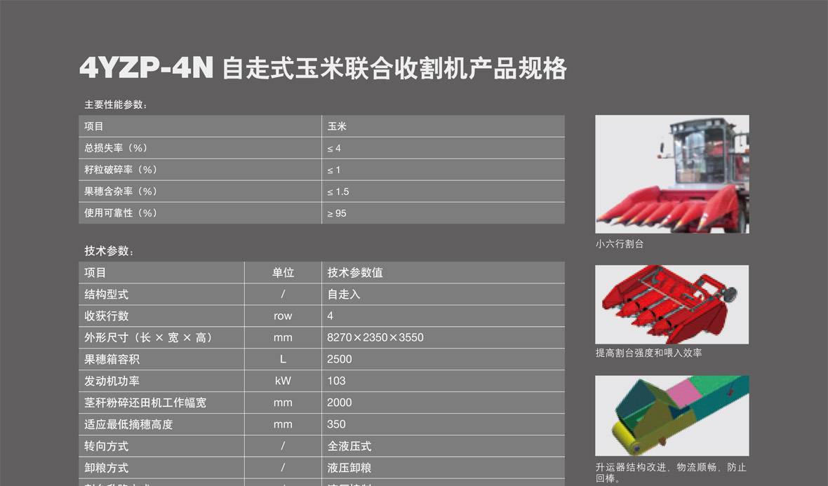 √ 割臺采用摘穗板和拉莖輥組合的摘穗方式,適應地區廣,摘穗損失小。