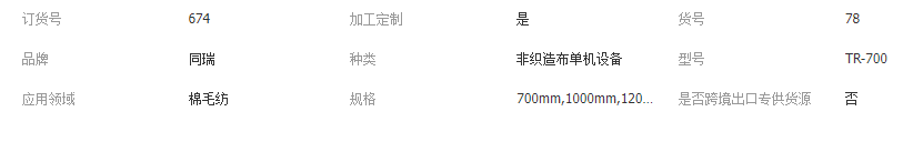 主營: 非織造布機械 紡機配件 棉麻毛初加工