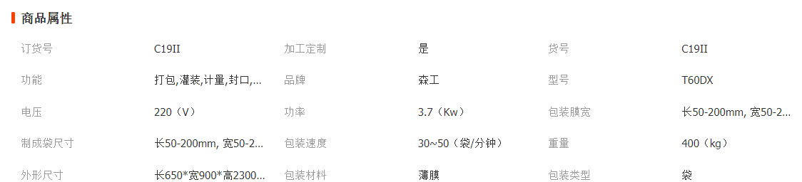 本機特點:可自動完成計量、填充、計數、打印(需另配打碼機)等周期作業;集光電跟蹤、無極調速等功能于一體;封口形式為背封。