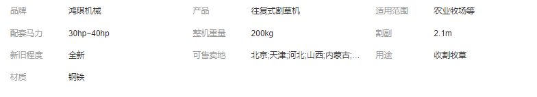 新款加固方形往復式割草機 牧草收割機 拖拉機帶刀條割 鴻琪機械