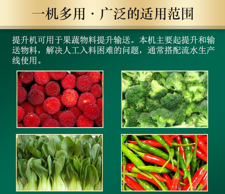 適用領域主要用于物料的提升輸送