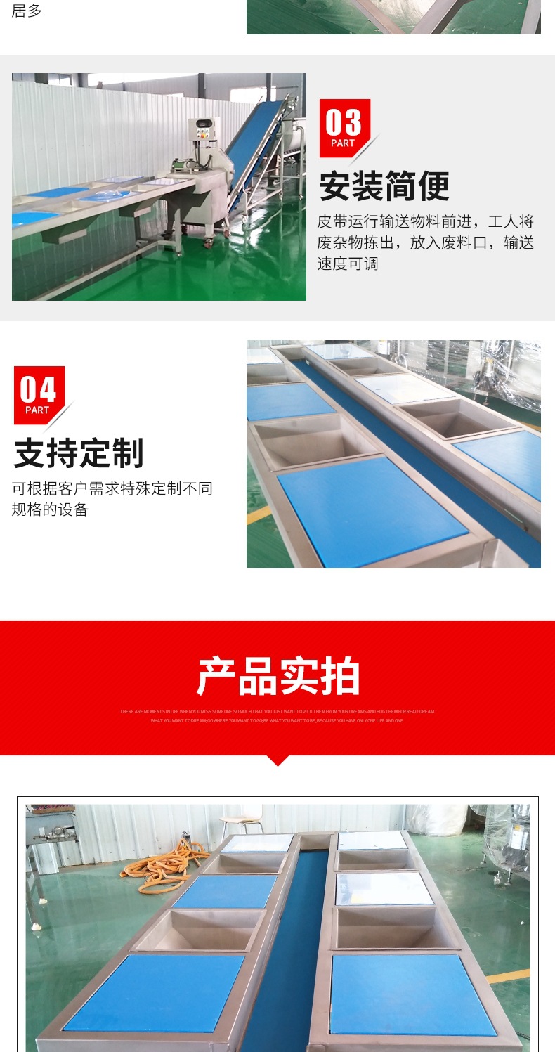 挑選臺 分揀輸送機304不銹鋼果蔬凈菜帶式分揀臺六工位挑選臺
