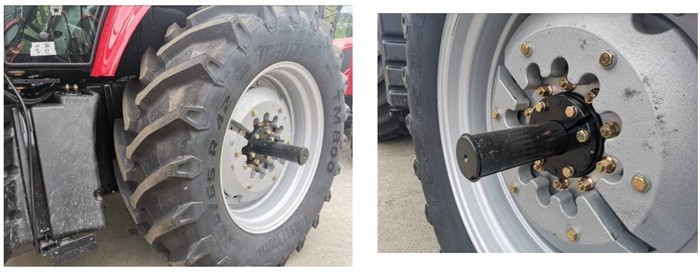 4.后輪為滑動軸結構的無級調節安裝方式,輪距的調整方便、調整范圍廣;輪胎可裝前單后單、前單后雙,并有斜交胎和子午線胎多種規格供選裝;同時有進口特瑞堡、米其林等品牌供選擇,滿足客戶多樣化需求。