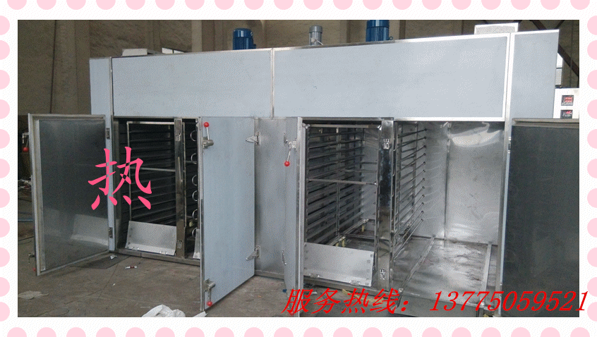 熱風循環烘箱通用型干燥設備,適應面較寬,廣泛適用于制藥、化工、食品、輕工、重工等行業物料及產品的加熱固化、干燥脫水。如:原料藥、生藥、中藥飲片、粉劑、顆粒、沖劑、大小蜜丸包裝瓶、顏料、染料、脫水蔬菜、瓜果干、魚肉干、飼料添加劑、蠶繭、香腸、塑料樹脂、佛香、電器原件、烘漆等。 一、加熱熱源有蒸氣、電、遠紅外、電蒸汽兩用,供用戶選擇。 二、使用溫度,蒸汽加熱50-140℃,最高150℃。 三、用電、遠紅外溫度50-500℃。 四、備有自控系統和電腦控制系統供用戶選擇。 五、常用蒸汽壓力0.2-0.8Mpa(2-8kg/cm2)。 六、配用電加熱,按Ⅰ型計算15kw,實用5-8w/h。 七、特殊要求在定貨時說明。 八、非標烘箱價格面議。 九、使用溫度大于140℃或小于60℃,要在訂貨時注明。 十、本廠出廠烘車、烘盤尺寸統一,可以互換。 十一、烘盤尺寸:450×640×45(mm) 適用范圍廣,可干燥各種物料,是通用干燥設備。 大部分熱風在箱內循環,熱效率高,節約能源。 利用強制通風作用,箱內設有可調式分風板,物料干燥均勻,熱源可采用蒸汽、導熱油、電、熱水、遠紅外等,選擇廣泛。 溫度適應范圍廣,根據用戶要求,可達常溫至350℃。 整機噪音小,運轉平穩,溫度自控,安裝維修方便。