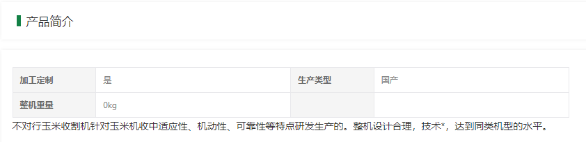 不對行玉米收割機技術參數: