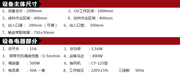 規(guī)格殺菌機(尺寸定做)定金,2000*500mm(殺菌區(qū)域長1米),3000*500mm(殺菌區(qū)域長2米),4000*500mm(殺菌區(qū)域長3米),5000*500mm(殺菌區(qū)域長4米),6000*500mm(殺菌區(qū)域長5米)