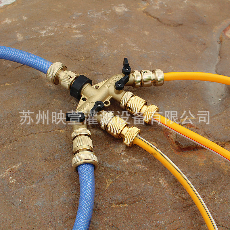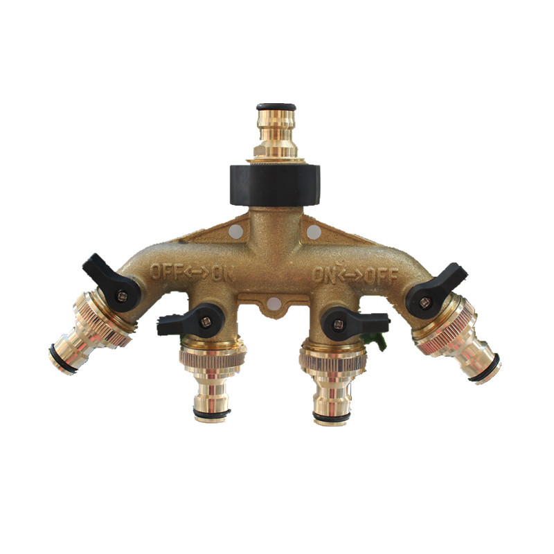 銅家用四通閥門分水控制器分流器澆花一分四奶嘴接頭園藝灌溉