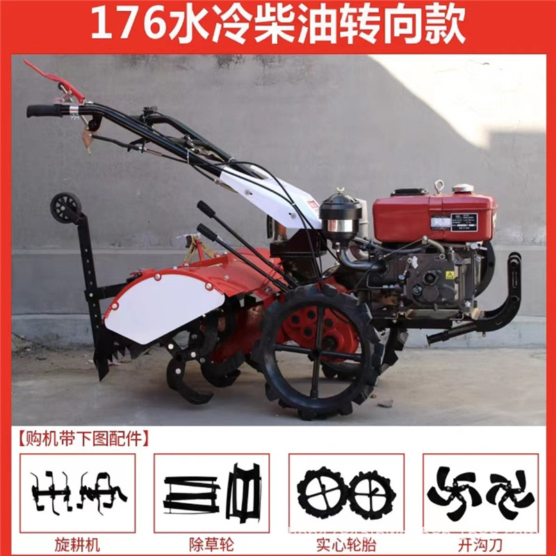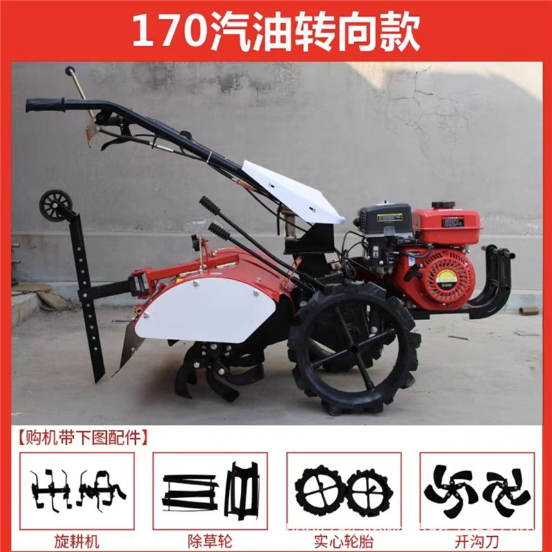 旋耕機主要功能: 1、果園、大棚、苗圃進行旋耕松土除草作業(yè); 2、配上播種施肥器,可用來施肥播種; 3、配開溝刀可以開溝培土 汽油后旋耕微耕機特點: 一、 整機尺寸小,重心低、勞動強度低、操作方便、婦女也可以使用。非常適合果園工作 二、 采用渦輪蝸桿傳動,傳動比大、動力損耗小 三、 工作效率高、功能齊全、比普通微耕機效率提高1倍左右,并且可以獨立完成旋耕、鋤草、開溝等多項農(nóng)藝