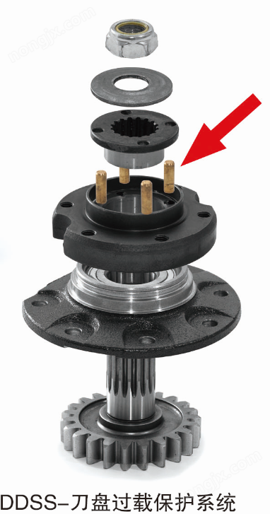 2、切割器采用歐洲D(zhuǎn)DSS刀盤(pán)過(guò)載保護(hù)系統(tǒng),這個(gè)系統(tǒng)有一個(gè)連接法蘭和四個(gè)安全銷(xiāo),過(guò)載時(shí),法蘭將安全銷(xiāo)剪斷,防止傳動(dòng)齒輪損壞,這種設(shè)計(jì)可以快速更換安全銷(xiāo),節(jié)省時(shí)間。
