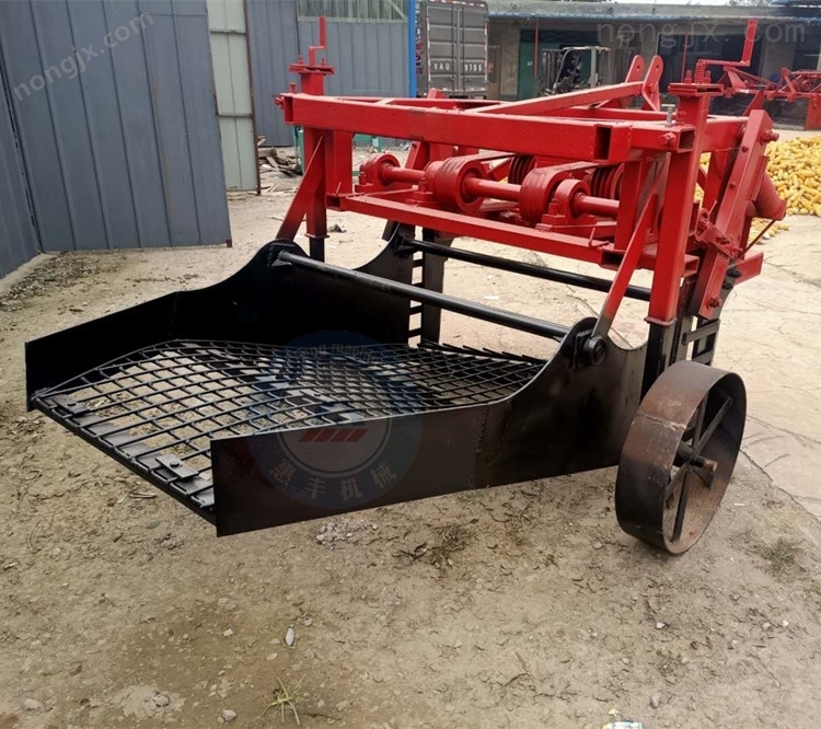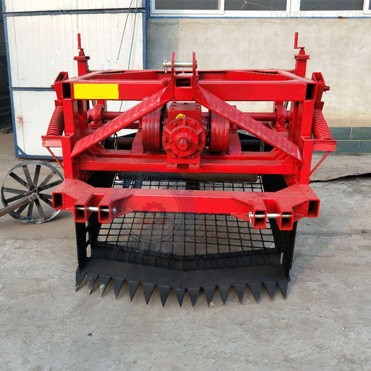 挖掘鏟的擺幅,可以通過調節收獲機連桿的長度來調整。三角帶前面的連桿,負責左面挖掘鏟的調整,兩個立軸中間的連桿,負責右面挖掘鏟的調整。將馬鈴薯收獲機收獲機提離地面,并使拖拉機迨速運轉,把連桿鎖緊螺母松開,調整相應的連桿,注意觀察兩面挖掘鏟的擺動幅度,以兩邊刪條不碰防護板為宜,直至調整到擺幅*,然后將螺母鎖緊。