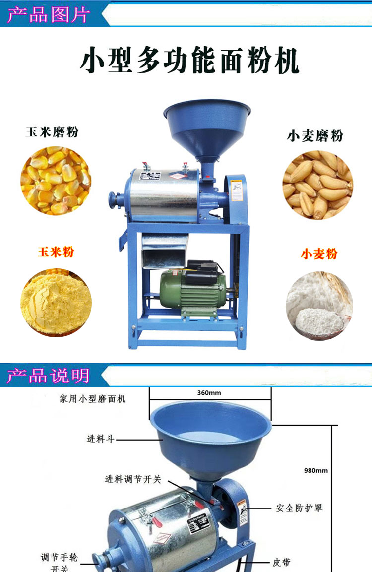 家用磨面機小型兩相電面粉機小麥玉米雜糧磨面機