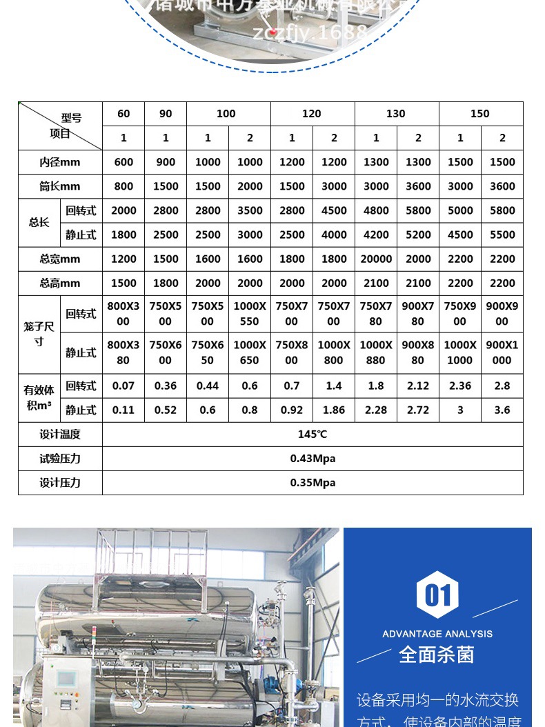 詳細(xì)信息 訂貨號(hào)2000468 加工定制是 貨號(hào)3000549 品牌中方基業(yè) 型號(hào)zfjy600 殺菌設(shè)備類型塔式 適用范圍肉制品加工廠設(shè)備,休閑食品廠設(shè)備,飲品店設(shè)備,果蔬加工廠設(shè)備 營(yíng)銷新品 規(guī)格600*1000 是否跨境出口專供貨源否