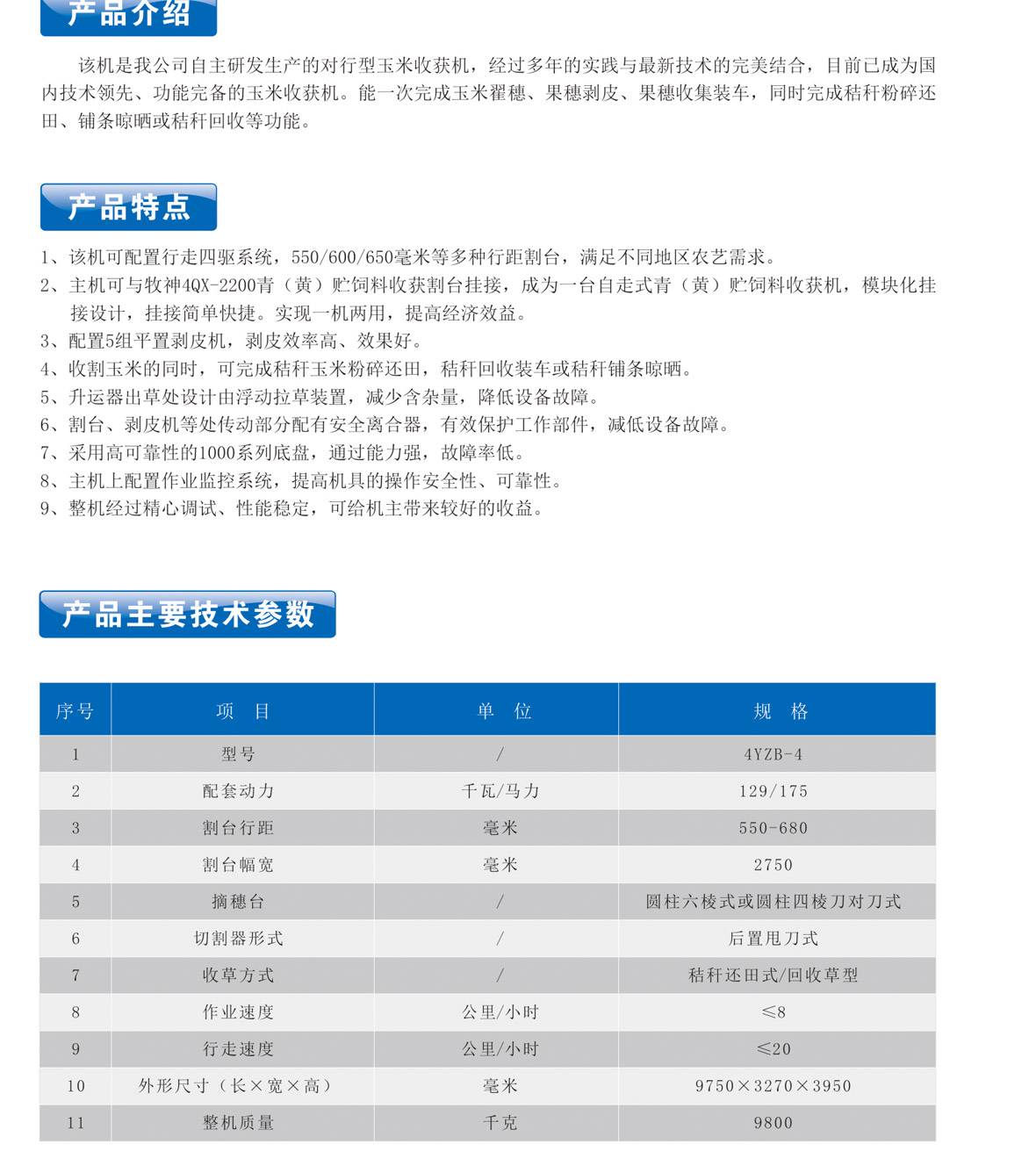 牧神4YZB-4自走式收玉米聯(lián)合收獲機(jī)
