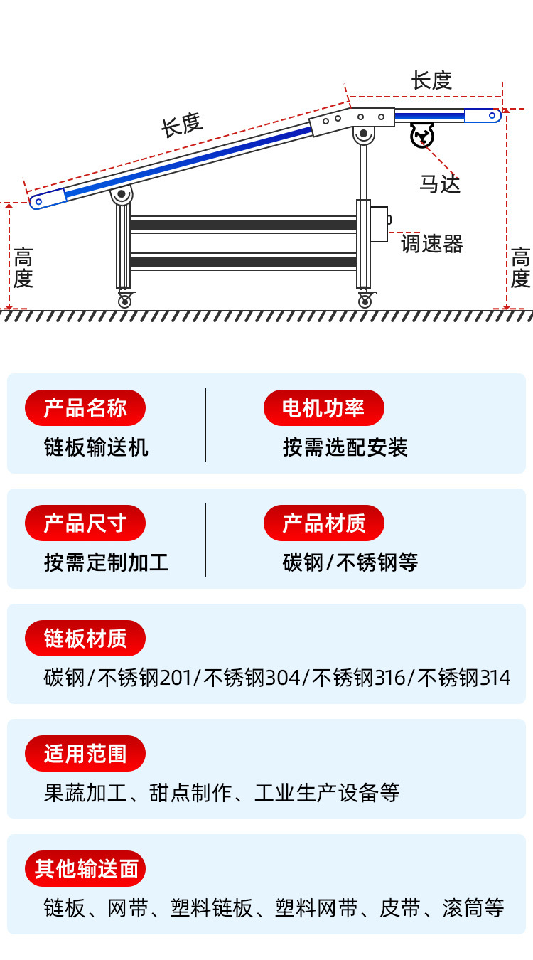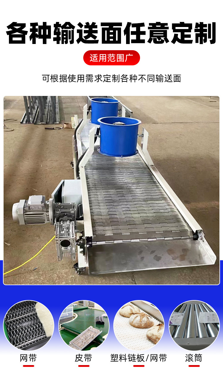 不銹鋼鏈板輸送機(jī)耐高溫耐腐貨物運輸食品清洗茶葉風(fēng)干鏈板輸送機(jī)