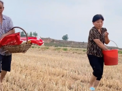 天氣預報有雨,公公提前播種花生,婆婆當配重,地里實在太干了