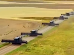驚艷!大型小麥機收陣列,現代農業機械化!